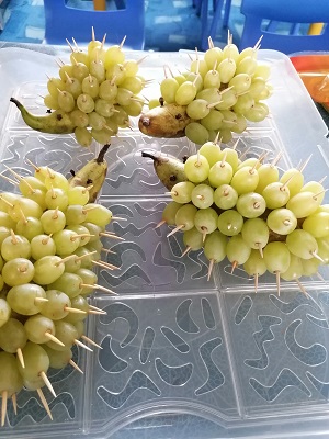 Naši predškoláci sa čoraz viac blížia ku nástupu do ZŠ dovŕšením 6. rokov a patrične sa to aj oslavuje. Dnes to bol napríklad hroznový ježko od Alexejka Svobodu, balíčky s dobrotou od Jakubka Luckého a gumenými cukríkmi od Elinky Hanesovej. Všetky deti krásne zaspievali Veľa šťastia, zdravia.... a pustili sa do zdravých dobrôt.